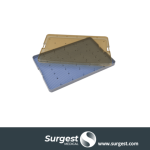 Container de plástico duro autoclavable con tapa trasnparente, para esterilizar cánulas, contiene una rejilla de plástico ideal para guardalas ordenadas por sets. -
