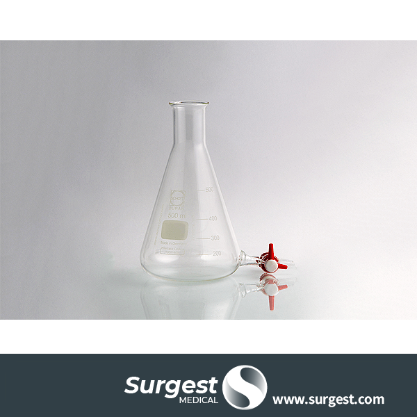 Frasco (Matraz de Erlenmeyer) de 500 ml para lavar el tejido adiposo lipoaspirado.