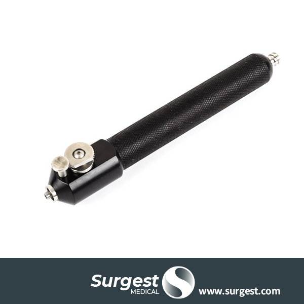 Mango de irrigación anestesica con sistema de control Apagado/encendido, doble conexión Luer Lock, fabricado en acero medico.
