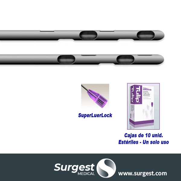 Descripción: GEMS – Cánula Miller de Lipoextracción Premium Tulip, SuperLuerLok, Monouso de 2.11mm D.E. (1.70mm D.I.) x 15cm.