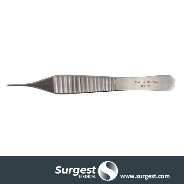 Referencia: 060-118 · Pinzas Adson · Punta Serrada de 1,0mm, 12cm