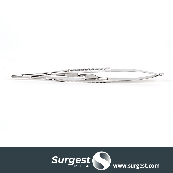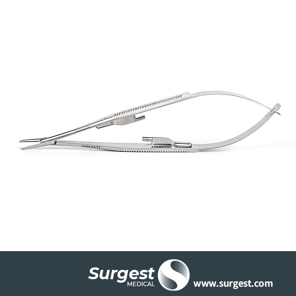 Referencia: 172-315, Porta Agujas Castroviejo, Mango Curvo y Plano con cerradura, 14cm