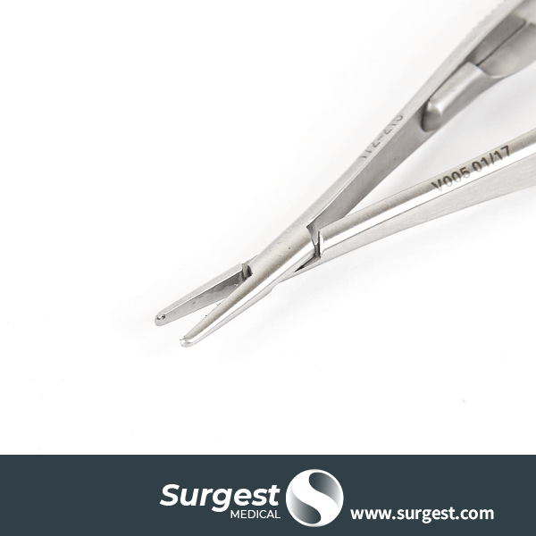Referencia: 172-310, Porta Agujas Castroviejo, Mango Curvo y Plano, 14cm