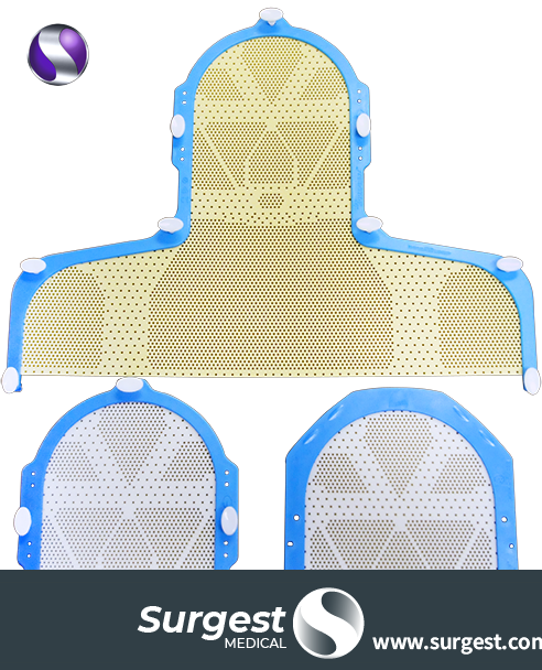 El patrón de perforación optimizado, que contiene áreas de alto y bajo porcentaje de apertura, maximiza la rigidez de la máscara y minimiza el efecto de bolo que podrían provocar reacciones en la piel.